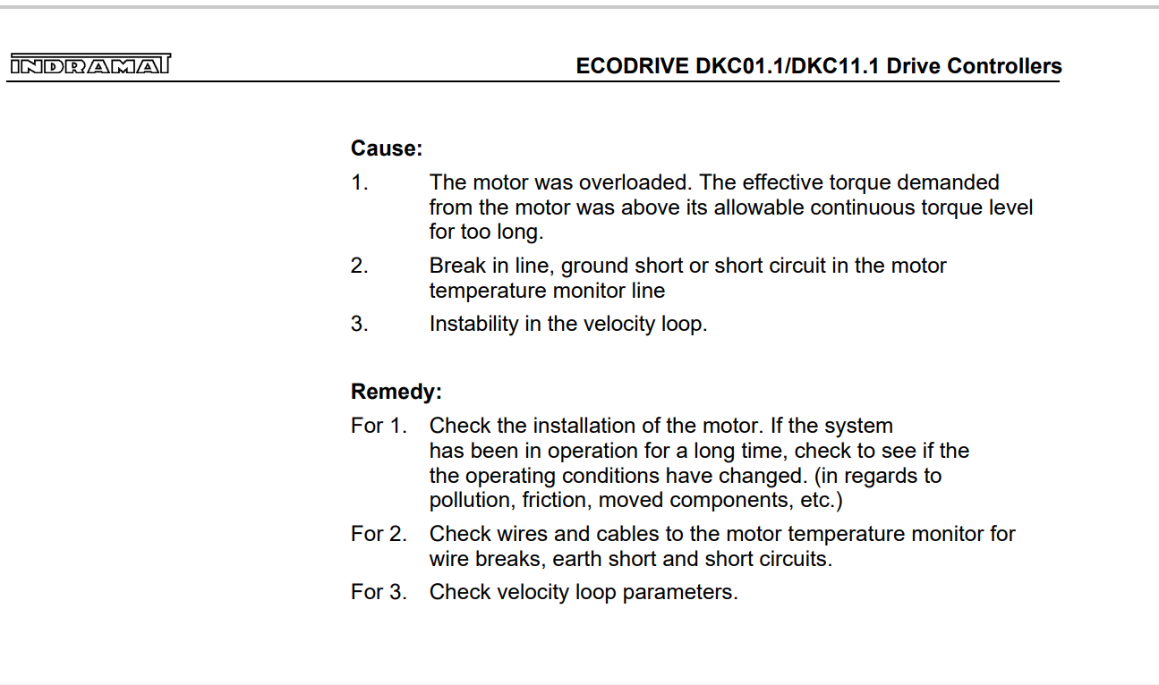來自電機的扭矩高于其允許的連續(xù)扭矩水平