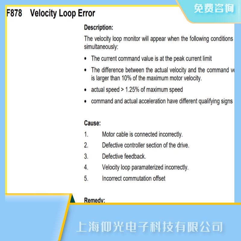 博世力士樂F878速度環(huán)錯誤維修的故障代碼含義解析: